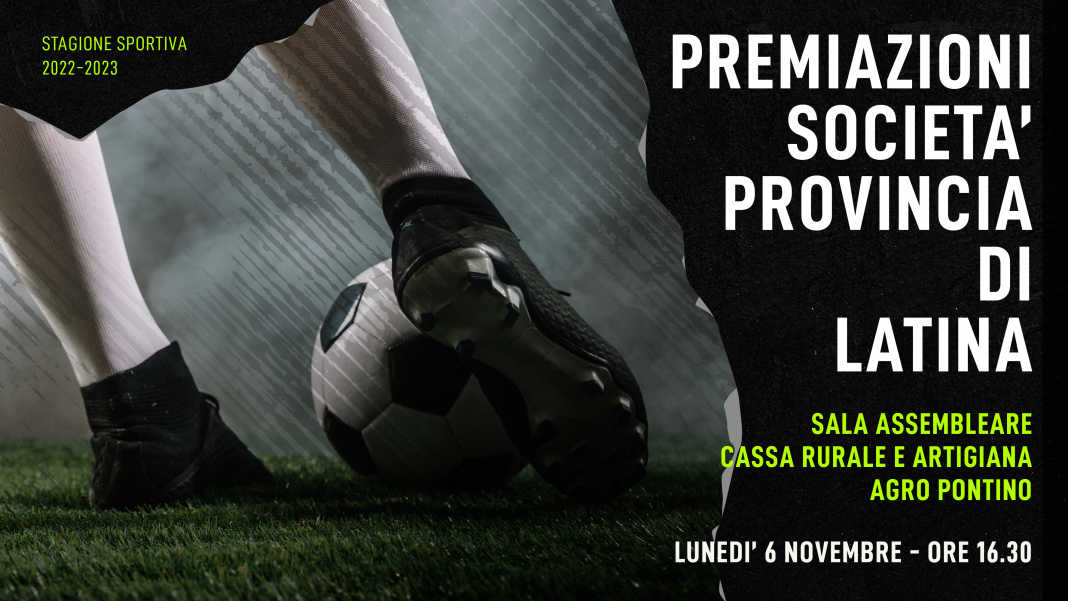 Ecco le società vincitrici i rispettivi gironi dei campionati regionali e provinciali di calcio a 11 e calcio a 5 maschile e femminile, nonché vincitrici del premio disciplina per la Stagione Sportiva 2022 /2023, territorialmente appartenenti alla Provincia di Latina, che dovranno prendere parte alla cerimonia di premiazione che si terrà lunedì prossimo, 6 novembre 2023 alle ore 16.30 presso la sala assembleare della Cassa Rurale ed Artigiana dell’Agro Pontino sita in Pontinia, Via Leonardo Da Vinci.