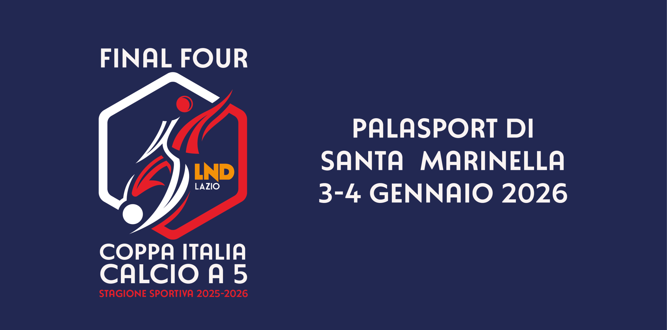Sarà il rinnovato Palasport di Santa Marinella ad ospitare le Finale Four della Coppa Italia di Calcio a 5, sia maschile che femminile. Appuntamento con le giornate di sabato 3 e domenica 4 gennaio, quando sulla costa tirrenica si disputeranno prima le semifinali e poi le finali della manifestazione che assegna i primi trofei della stagione sportiva 2025/2026.